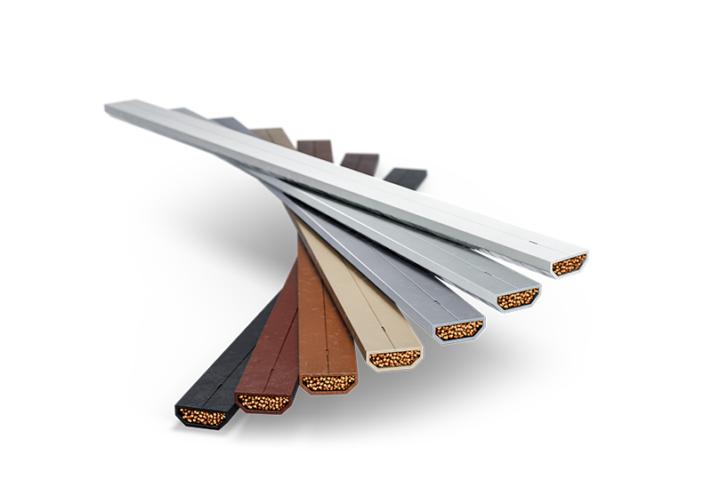 Robustní profily ze tří nebo čtyř vrstev dřeva se čtyřmi vrstvami laku zaručujícími dlouhou životnost.